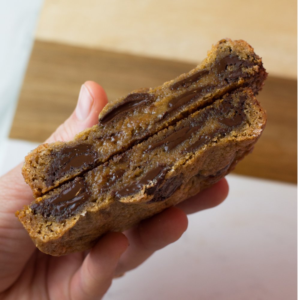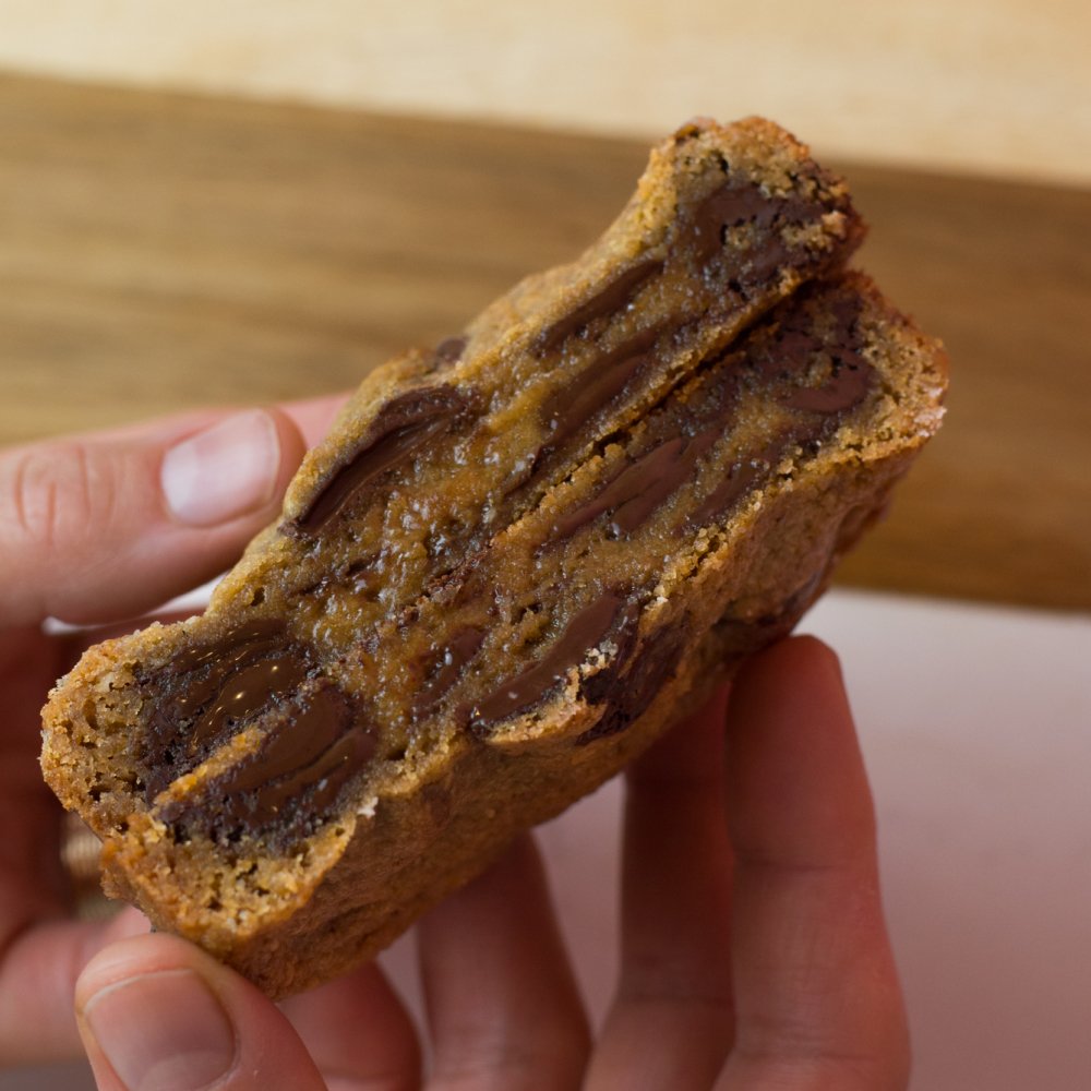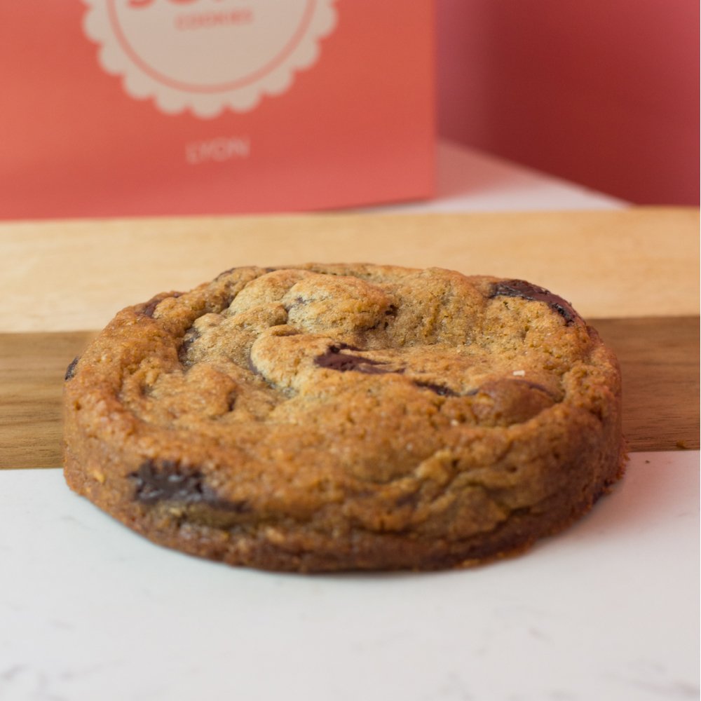 Élaboré à partir de sucre muscovado complet bio (sucre de canne non raffiné), de chocolat noir 70% (Le Roosevelt) et de noix de macadamia. C’est une alliance parfaite puisque le sucre muscovado apporte de la puissance alors que chocolat noir 70% aux notes cacaotées vient prononcer davantage le goût. Les noix de macadamia, elles, amènent de la rondeur et du craquant pour équilibrer les saveurs.